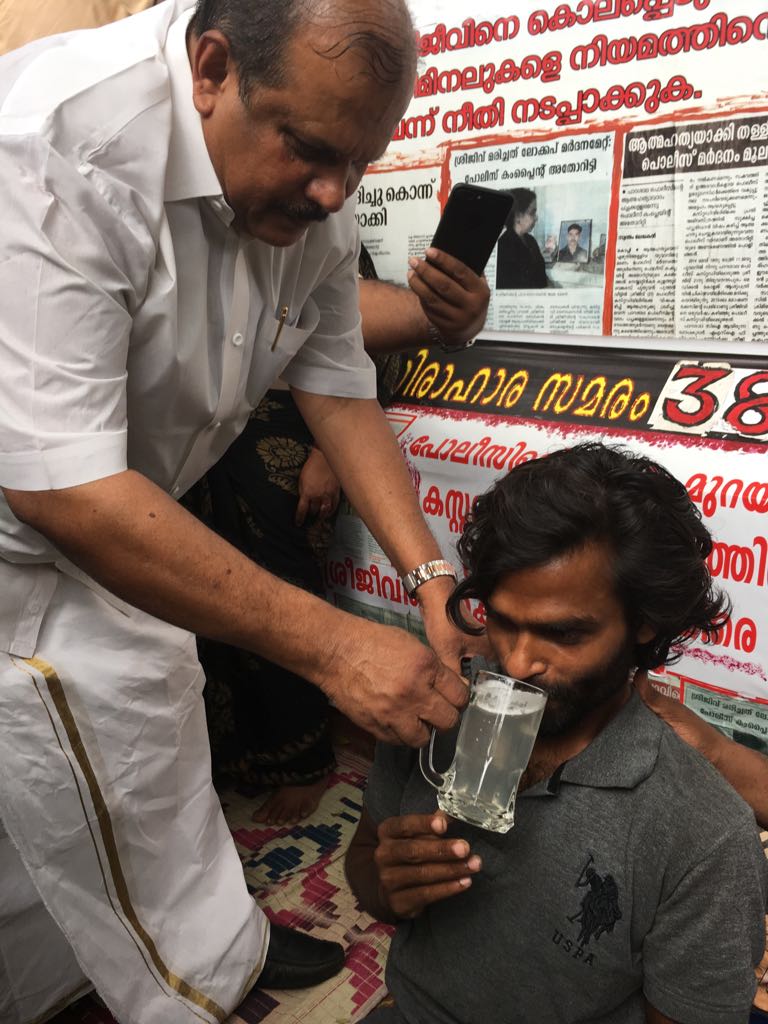 തിരുവനന്തപുരം : പോലീസ് മര്ദ്ദനത്തില് കൊല്ലപ്പെട്ട സഹോദരന് വേണ്ടി ഒന്നരവര്ഷത്തില് ഏറെയായി സെക്രട്ടറിയേറ്റിനു മുന്പില് സമരം ചെയ്തു വന്ന യുവാവിന് പൂഞ്ഞാര് എം എല് എ പി സി ജോര്ജ്ജിന്റെ പിന്തുണ. പാറശാല സ്വദേശിയായ ശ്രീജിത്ത് ആണ് തന്റെ സഹോദരന് ശ്രീജിവിന്റെ കൊലപാതകത്തില് കുറ്റക്കാരെ ശിക്ഷിക്കണം എന്ന് ആവശ്യപ്പെട്ടുകൊണ്ട് 453 ദിവസമായി സമരം നടത്തി വന്നത്.അതുപോലെ കഴിഞ്ഞ 35 ദിവസമായി നിരാഹാരസമരമാണ് യുവാവ് നടത്തി വന്നത്. എന്നാല് അധികാരികള് ആരുംതന്നെ ഇതുവരെ യുവാവിനെയോ സമരത്തിനെയോ തിരിഞ്ഞുനോക്കിയില്ല. 2014 മേയ് 21 നാണ് പാറശാല പോലീസിന്റെ ക്രൂരമര്ദ്ദനത്തെ തുടര്ന്ന് ശ്രീജിവ് കൊല്ലപ്പെടുന്നത്. തുടര്ന്ന് ശ്രീജിവിന്റെ മരണത്തിനെ കുറിച്ച് അന്വേഷിച്ച പോലീസ് കംപ്ലയിന്റ് അതോറിറ്റി കേസിലെ പ്രതികളായ പോലീസുകാരെ കുറിച്ച് വിശദമായ റിപ്പോര്ട്ട് 2016 മേയ് 17നു സര്ക്കാരിനെ സമര്പ്പിക്കുകയുണ്ടായി. കുറ്റക്കാരായ പോലീസുകാര്ക്ക് എതിരെ നടപടി എടുക്കണം എന്നായിരുന്നു അതിലെ മുഖ്യ ആവശ്യം.