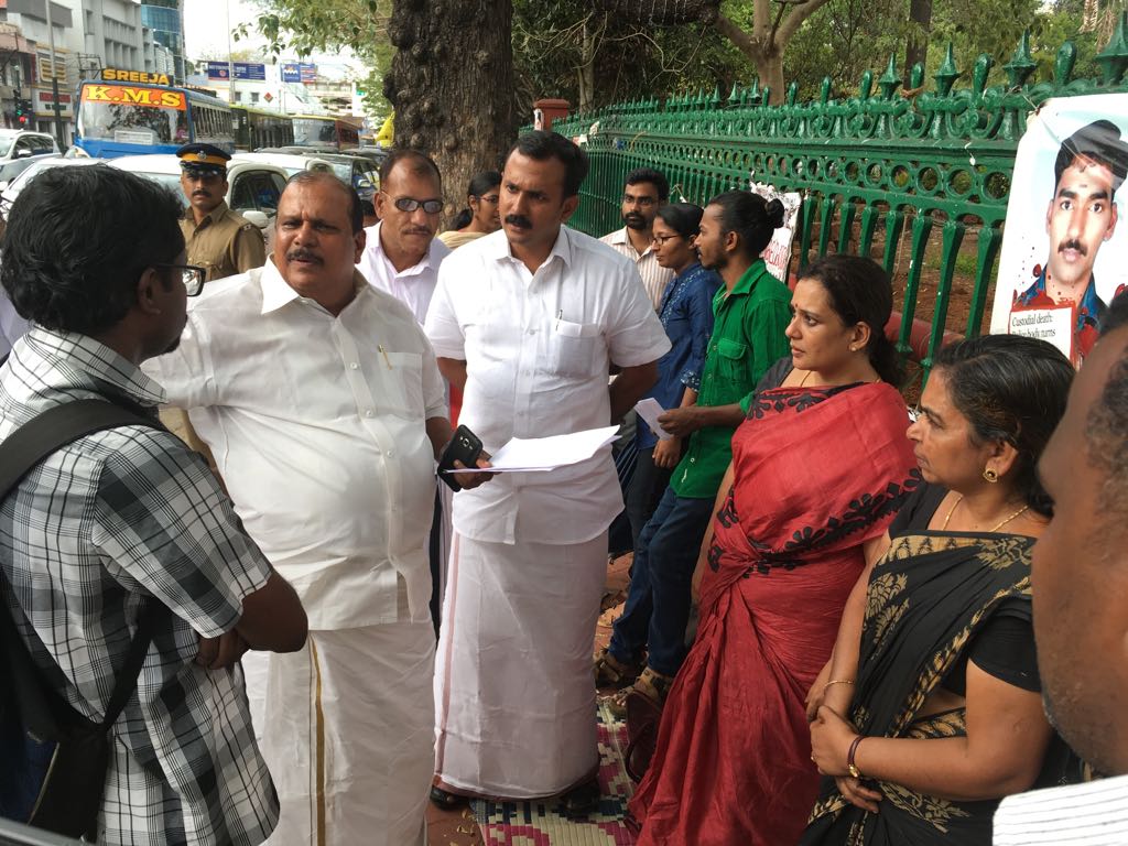 കൂടാതെ മരിച്ച യുവാവിന്റെ കുടുംബത്തിനു 10 ലക്ഷം രൂപ നഷ്ടപരിഹാരം നല്കണം എന്നും ജസ്റ്റിസ് കെ നാരായണക്കുറുപ്പ് അധ്യക്ഷനായ പോലീസ് കംപ്ലയിന്റ് അതോറിറ്റി അവശ്യപ്പെട്ടിരുന്നു. ഈ തുക കേസിലെ പ്രതികളായ പോലീസുകാരില് നിന്നും പിരിച്ചെടുക്കണമെന്നും റിപ്പോര്ട്ട് പറയുന്നു. എന്നാല് റിപ്പോര്ട്ട് വന്നു ഒരു വര്ഷം ആകറായിട്ടും മേല്പ്പറഞ്ഞ ഉദ്യോഗസ്ഥരെല്ലാം ഇപ്പോഴും ഡിപ്പാര്ട്ട്മെന്റില് തുടരുകയാണ്. നഷ്ടപരിഹാര തുക ലഭിച്ചു എന്നല്ലാതെ മറ്റു നടപടികള് ഒന്നും തന്നെ ഉണ്ടായില്ല. നന്നേ ചെറുപ്പത്തില് അച്ഛന് നഷ്ടപ്പെട്ട ശ്രീജിത്തിന്റെ മൂത്ത ചേട്ടന് ശ്രീജു ടിപ്പര് അപകടത്തില് ജോലികള് ചെയ്യാന് കഴിയാത്ത അവസ്ഥയില് വീട്ടില് കിടപ്പിലാണ്. ഒരാള് പോലീസുകാരുടെ ക്രൂരതകാരണം കൊല്ലപ്പെടുകയും ചെയ്തു. ഇപ്പോള് അമ്മ രമണിയാണ് കുടുംബം നോക്കാന് കഷ്ട്ടപ്പെടുന്നത്. സഹോദരന്റെ കൊലപാതകത്തില് നീതി ആവശ്യപ്പെട്ടു കഴിഞ്ഞ ഒന്നരവര്ഷമായി സമരം നടത്തിവന്ന ശ്രീജിത്തിനെ അധികാരികളോ സര്ക്കാരോ ഇതുവരെ തിരിഞ്ഞുപോലും നോക്കിയില്ല. കഴിഞ്ഞ കുറച്ചു ദിവസമായി നിരാഹരസമരം ചെയ്തു വന്ന ഇയാളുടെ ആരോഗ്യസ്ഥിതി മോശമായി വരികയായിരുന്നു. തുടര്ന്നാണ് ശ്രീജിത്തിന്റെ സമരത്തെ പറ്റി അറിഞ്ഞ എം എല് എ സംഭവസ്ഥലത്ത് എത്തുകയും. വരുന്ന ചൊവ്വാഴ്ച വിഷയം നിയമസഭയില് അവതരിപ്പിക്കാം എന്ന് വാക്ക് നല്കുകയും ചെയ്തു.