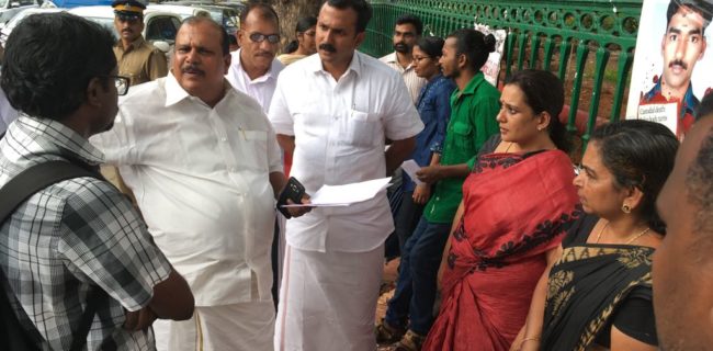 തിരുവനന്തപുരം : പോലീസ് മര്ദ്ദനത്തില് കൊല്ലപ്പെട്ട സഹോദരന് വേണ്ടി ഒന്നരവര്ഷത്തില് ഏറെയായി സെക്രട്ടറിയേറ്റിനു മുന്പില് സമരം ചെയ്തു വന്ന യുവാവിന് പൂഞ്ഞാര് എം എല് എ പി സി ജോര്ജ്ജിന്റെ പിന്തുണ. പാറശാല സ്വദേശിയായ ശ്രീജിത്ത് ആണ് തന്റെ സഹോദരന് ശ്രീജിവിന്റെ കൊലപാതകത്തില് കുറ്റക്കാരെ ശിക്ഷിക്കണം എന്ന് ആവശ്യപ്പെട്ടുകൊണ്ട് 453 ദിവസമായി സമരം നടത്തി വന്നത്.അതുപോലെ കഴിഞ്ഞ 35 ദിവസമായി നിരാഹാരസമരമാണ് യുവാവ് നടത്തി വന്നത്. എന്നാല് അധികാരികള് ആരുംതന്നെ ഇതുവരെ യുവാവിനെയോ സമരത്തിനെയോ തിരിഞ്ഞുനോക്കിയില്ല. 2014 മേയ് 21 നാണ് പാറശാല പോലീസിന്റെ ക്രൂരമര്ദ്ദനത്തെ തുടര്ന്ന് ശ്രീജിവ് കൊല്ലപ്പെടുന്നത്. തുടര്ന്ന് ശ്രീജിവിന്റെ മരണത്തിനെ കുറിച്ച് അന്വേഷിച്ച പോലീസ് കംപ്ലയിന്റ് അതോറിറ്റി കേസിലെ പ്രതികളായ പോലീസുകാരെ കുറിച്ച് വിശദമായ റിപ്പോര്ട്ട് 2016 മേയ് 17നു സര്ക്കാരിനെ സമര്പ്പിക്കുകയുണ്ടായി. കുറ്റക്കാരായ പോലീസുകാര്ക്ക് എതിരെ നടപടി എടുക്കണം എന്നായിരുന്നു അതിലെ മുഖ്യ ആവശ്യം.
