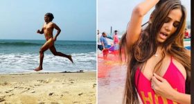 തന്റെ ആരാധകരെ സന്തോഷിപ്പിക്കാന് എന്തിനും തയ്യാറാകുന്ന താരമാണ് പൂനം പാണ്ഡെ. മറ്റു താരങ്ങളെ പോലെ വിശേഷ ദിവസങ്ങള് എത്തുമ്പോള് ചുമ്മാ വിഷ് ചെയ്തു പോവുക പൂനത്തിനു ഇഷ്ടമുള്ള കാര്യമല്ല. സിനിമയില് വലിയ തിരക്കൊന്നും ഇല്ലെങ്കിലും താന് ഇവിടെയൊക്കെ തന്നെയുണ്ട് എന്ന് കാണിക്കുവാന് തന്റേതായ ഒരു സ്റ്റൈലുണ്ട് പൂനത്തിന്. അതുകൊണ്ടുതന്നെ ഹോളി ആയപ്പോള് അതിന്റെതായ രീതിയില് തന്നെ പൂനം ആരാധകര്ക്ക് ഹോളി ആശംസകള് നേര്ന്നു. അടിമുടി ചായത്തില് മുങ്ങി വെറും ബിക്കിനിയിലായിരുന്നു പൂനത്തിന്റെ ഇത്തവണത്തെ ചൂടൻ ഹോളി ആഘോഷം. ജിംഗിൾ ബൂബ്സ് എന്നൊരു ഞെട്ടുന്ന വീഡിയോയായിരുന്നു സമ്മാനം. ക്രിസ്തുമസ് സമയവും പൂനം ഇത്തരത്തില് വന്നു ഞെട്ടിച്ചിരുന്നു.