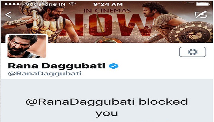 മോഹന്ലാലിനെതിരെയും, ബാഹുബലി സിനിമയ്ക്കെതിരെയും അപകീര്ത്തിപരമായ പരാമര്ശം നടത്തി മാധ്യമങ്ങളില് ഇടം നേടിയെടുത്ത കെആര്കെയെ, ബാഹുബലിയില് വില്ലന് വേഷം ചെയ്ത റാണ ദഗുപതി ട്വിറ്ററില് ബ്ലോക്ക് ചെയ്തെന്നു പുതിയ പബ്ലിസിറ്റി സ്റ്റണ്ട്.