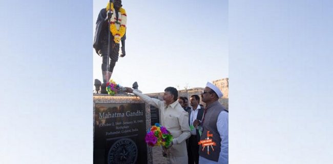 ഡാളസ്: ആന്ധ്രാപ്രദേശ് മുഖ്യമന്ത്രി ചന്ദ്രബാബു നായിഡു ഡാളസില് അമേരിക്കയിലെ ഏറ്റവും വലിയ മഹാത്മാഗാന്ധി മെമ്മോറിയല് പാര്ക്ക് സന്ദര്ശിച്ച് രാഷ്ട്രപിതാവിന്റെ പ്രതിമയില് ഹാരാര്പ്പണം നടത്തുകയും ആദരാഞ്ജലി അര്പ്പിക്കുകയും ചെയ്തു. മെയ് ആറാം തീയതി ശനിയാഴ്ച മഹാത്മാഗാന്ധി മെമ്മോറിയല് ഓഫ് നോര്ത്ത് ടെക്സസ് ചെയര്മാന് ഡോ. പ്രസാദ് തോട്ടക്കര, അംഗങ്ങളായ റാവു കല്വായ, എം.വി.എല് പ്രസാദ്, പീയൂഷ് പട്ടേല് എന്നിവരുമായാണ് മുഖ്യമന്ത്രി പാര്ക്ക് സന്ദര്ശിക്കാന് എത്തിച്ചേര്ന്നത്.