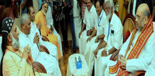 അതായത് മുസ്ലീം ന്യൂനപക്ഷങ്ങളോട് വ്യക്തമായ അകലം പാലിക്കുകയും എന്നാല് ക്രൈസ്തവ മേലാളന്മാരുമായി അടുത്ത് ഒരു വോട്ട് ബാങ്ക് സൃഷ്ടിച്ചെടുക്കുക എന്ന രാഷ്ട്രീയ ലക്ഷ്യത്തിലേയ്ക്കുമാണ് ബിജെപി നീങ്ങുന്നത്. കിട്ടുന്ന വിവരങ്ങള് അനുസരിച്ച് കേരളത്തില് ക്രൈസ്തവ സഭാ മേലധികാരികളുമായി കൂടിക്കാഴ്ച്ച അമിത്ഷായുടെ പരിപാടികളില് എവിടെയും ഉണ്ടായിരുന്നുന്നില്ല. എന്നാലിപ്പോള് സംഭവിച്ചിരിക്കുന്നതാകട്ടെ മറ്റൊന്നും.