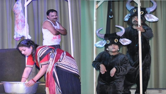 ഒരു കശാപ്പുകടയുടെ പശ്ചാത്തലത്തില് അറക്കുവാന് കൊണ്ടുവന്നിരിക്കുന്ന ഒരു എരുമയുടെയും ഭാനു എന്ന് പേരുള്ള ഒരു പോത്തിന്റെയും സംഭാഷണങ്ങളിലൂടെയും അവരുടെ വികാര വിക്ഷോഭങ്ങളിലൂടെയും ആണ് ശബ്ദമില്ലാത്തവരുടെ ശബ്ദമായി ഈ നാടകം മുന്നോട്ടു നീങ്ങുന്നത്. യുക്മ കലോത്സവ വേദികളിലും, നിരവധി അവാര്ഡ് നിശകളിലും നര്ത്തകിയും ഗായികയും അഭിനേത്രിയും ഒക്കെയായി യൂക്കെ മലയാളികള്ക്ക് ചിരപരിചിതയായ ബിന്ദു സോമന് ആണ് ഈ നാടകത്തിലെ എരുമയുടെ വേഷം അവിസ്മരണീയമാക്കിയത്. തന്റെ സ്വത സിദ്ധമായ ശൈലിയില് മികച്ച കയ്യടക്കത്തോടും ശബ്ദ നിയന്ത്രണത്തോടും കൂടെ വികാര തീവ്ര ഭാവങ്ങള് അവതരിപ്പിച്ച ബിന്ദു ഈ നാടകത്തിലൂടെ ആസ്വാദക മനസ്സിലെ തന്റെ സ്ഥാനം അരക്കിട്ടുറപ്പിച്ചു. നാടകത്തിലെ നായകനായ ഭാനു എന്ന പോത്തായി വേദിയില് എത്തിയത് ടെലിഫിലിമുകളിലും നാടകങ്ങളിലും അഭിനയിച്ചു പരിചയമുള്ള, ഗ്ലോസ്റ്റര് മലയാളി അസോസിയേഷന്റെ കഴിഞ്ഞ വര്ഷത്തെ സെക്രട്ടറി കൂടിയായിരുന്ന എബിന് ജോസ് ആണ്. നര്മ്മവും ശൃംഗാരവും കദനവും രോക്ഷവും ഒക്കെ അനായാസമായി, എരുമയുടെയും പോത്തിന്റെയും വേഷവിധാനത്തിലായിരുന്നെങ്കില് കൂടി, കാണികളിലേക്കെത്തിക്കുവാന് ഇവര്ക്ക് കഴിഞ്ഞു. ക്രൂരനും കാര്ക്കശ്യക്കാരനുമായ കാലന് വര്ക്കി എന്ന കശാപ്പുകാരനായി വേദിയില് ജീവിച്ചത് യൂക്കെ മലയാളികള്ക്ക് സുപരിചിതനും ഫോബ്മ സ്ഥാപക ജനറല് സെക്രട്ടറിയും ആയിരുന്ന അജിമോന് എടക്കര ആയിരുന്നു. കാലന് വര്ക്കിയുടെ അത്യുജ്ജ്വല വേഷ പകര്ച്ച വിധി കര്ത്താക്കളുടെ പ്രത്യേക പരാമര്ശത്തിനും അര്ഹമായി . കാലന് വര്ക്കിയുടെ സഹായിയായ ആന്റണി എന്ന കാഥാപാത്രത്തിനു ജീവന് നല്കിയത് സ്വിണ്ടന് സ്റ്റാര്സ് ആംഗവും ഇപ്പോള് ഗ്ലോസ്റ്റര് നിവാസിയുമായ പോള്സണ് ജോസ് എന്ന ബഹുമുഖ പ്രതിഭ ആണ്. എരുമയുടെയും പോത്തിന്റെയും കൊമ്പും തലയും അടക്കമുള്ള വേഷങ്ങളും വേദിയിലുപയോഗിച്ച മുഴുവന് പ്രോപ്പര്ട്ടികളും രൂപം കൊണ്ടത് പോള്സന്റെ കരവിരുതില് ആയിരുന്നു.