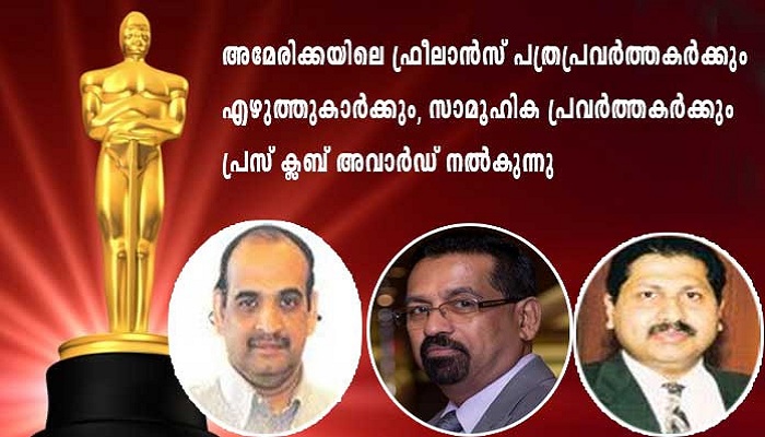 അമേരിക്കയിലെ ഫ്രീലാന്സ് പത്രപ്രവര്ത്തകര്ക്കും എഴുത്തുകാര്ക്കും സാമൂഹിക പ്രവര്ത്തകര്ക്കും പ്രസ് ക്ലബ് അവാര്ഡ് നല്കുന്നു