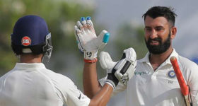 ചേതോഹരമായ ടെസ്റ്റ് ഇന്നിങ്സുമായി സെഞ്ചുറി കുറിച്ച ചേതേശ്വര് പൂജാര. ഏകദിനത്തിലെന്ന പോലെ തകര്ത്തടിച്ച് ഇരട്ടസെഞ്ചുറിക്ക് തൊട്ടടുത്ത് പുറത്തായ ഓപ്പണര് ശിഖര് ധവാന്. രണ്ടാം വിക്കറ്റില് ഇരുവരും പടുത്തുയര്ത്തിയ ഇരട്ടസെഞ്ചുറി കൂട്ടുകെട്ട് (253).