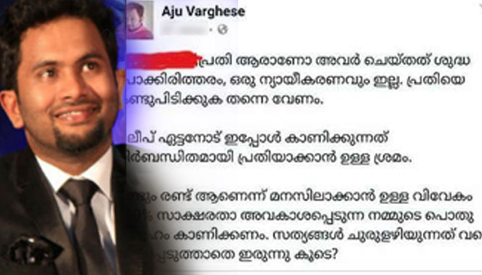 ആക്രമിക്കപ്പെട്ട നടിയുടെ പേര് ഫെയ്സ്ബുക്ക് പോസ്റ്റില് പരാമര്ശിച്ചതിന് അജുവിനെതിരെ പോലീസ് കേസെടുക്കുകയും ചെയ്തിരുന്നു. കളമശ്ശേരി സ്വദേശി ശിരീഷ് ബാബു നല്കിയ പരാതിയെ തുടര്ന്നാണ് പോലീസ് കേസെടുത്തത്. അതേസമയം തനിക്കെതിരെയുള്ള എഫ്.ഐ.ആര്. റദ്ദാക്കണമെന്ന് ആവശ്യപ്പെട്ട് അജുവര്ഗ്ഗീസ് ഹൈക്കോടതിയെ സമീപിക്കുകായയിരുന്നു.