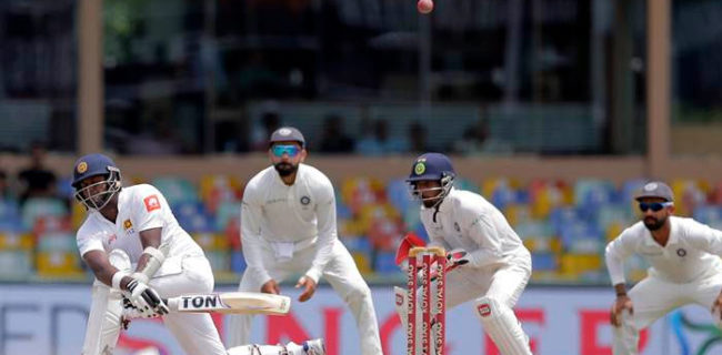 നാലാം ദിനം 16 റണ്സെടുത്ത പുഷ്പകുമാരയുടെ വിക്കറ്റാണ് ലങ്കക്ക് ആദ്യം നഷ്ടമായത്. അടുത്ത ഓവറില് രണ്ടു റണ്ണെടുത്ത ദിനേശ് ചണ്ഡിമലിന്റെയും വിക്കറ്റ് പോയി. ജഡേജയുടെ പന്തില് രഹാനെക്ക് ക്യാച്ച് നല്കുകയായിരുന്നു ചണ്ഡിമല്. എന്നാല് പിന്നീട് കരുണരത്ന എയ്ഞ്ചലോ മാത്യൂസിനെ കൂട്ടുപിടിച്ച് 69 റണ്സ് ലങ്കന് സ്കോറിനൊപ്പം ചേര്ത്തു.