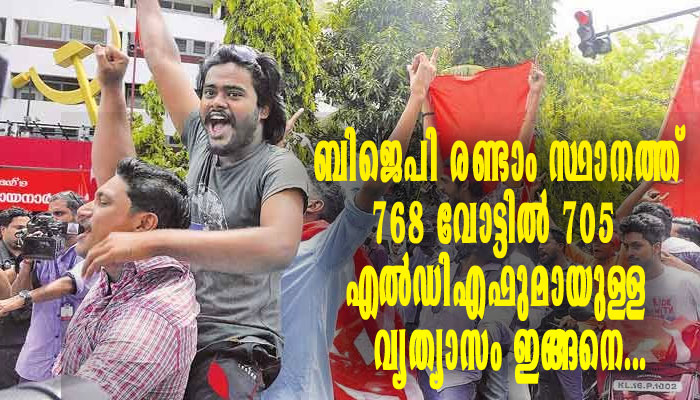 ഇതില് ഇടവേലിക്കലില് കേവലം 34 വോട്ടുനേടിയാണ് ബി.ജെ.പി. രണ്ടാമതായത്. മൂന്നാമതുള്ള യു.ഡി.എഫിന് നേടാന് സാധിച്ചത് കേവലം 29 വോട്ടുമാത്രം. ആകെയുള്ള 768 വോട്ടില് 705 വോട്ടും നേടി 671 വോട്ടിന്റെ തകര്പ്പന് ജയമാണ് ഇടതുമുന്നണി നേടിയത്.