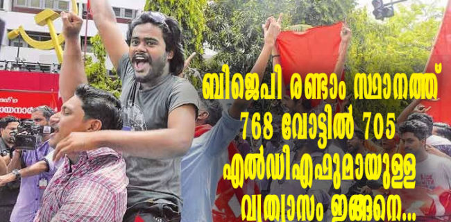 ഇതില് ഇടവേലിക്കലില് കേവലം 34 വോട്ടുനേടിയാണ് ബി.ജെ.പി. രണ്ടാമതായത്. മൂന്നാമതുള്ള യു.ഡി.എഫിന് നേടാന് സാധിച്ചത് കേവലം 29 വോട്ടുമാത്രം. ആകെയുള്ള 768 വോട്ടില് 705 വോട്ടും നേടി 671 വോട്ടിന്റെ തകര്പ്പന് ജയമാണ് ഇടതുമുന്നണി നേടിയത്.