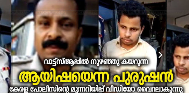 ശല്യം സഹിക്കാതെ വന്നതോടെ ഗ്രൂപ്പ് അംഗങ്ങള് പൊലീസിന് പരാതി നല്കി. അന്വഷണം നടത്തിയ പോലീസ് ആയിഷയെ കണ്ട് ഞെട്ടി. പോലീസ് മാത്രമല്ല വാട്സ്ആപ് ഗ്രൂപ്പിലുള്ളവരും ഞെട്ടി. ആയിഷയെന്ന പേരില് തട്ടിപ്പു നടത്തിയത് ഒരു യുവാവായിരുന്നു. ഒരു പെണ്കുട്ടിയുടെ ചിത്രമായിരുന്നു ഇയാള് പ്രൊഫൈല് പിക്ചറായി ഇട്ടിരുന്നത്. ഫേസ്ബുക്കിലൂടെയാണ് ആയിഷ എന്ന തട്ടിപ്പുവീരനെ തുറന്നുകാട്ടുന്ന പൊലീസ് ഉദ്യോഗസ്ഥന്റെ വീഡിയോ പങ്കുവച്ചിരിക്കുന്നത്.