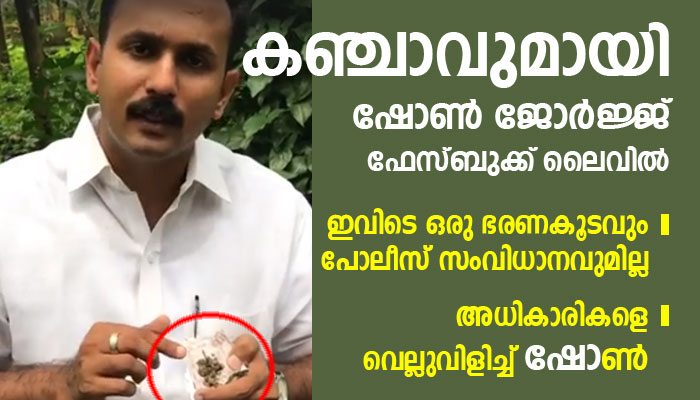 കഞ്ചാവും കൈയ്യില്വെച്ച് ഷോണ് ജോര്ജ്ജിന്റെ ഷോ; തന്റെ കയ്യിലുള്ളത് പുല്ലല്ല, ഒന്നാന്തരം കഞ്ചാവെന്നും വീഡിയോയില്