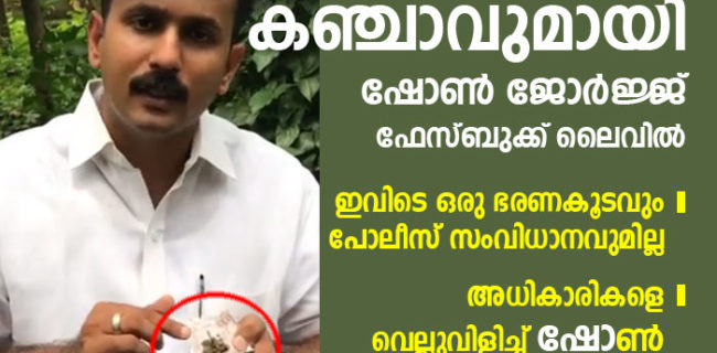 കഞ്ചാവും കൈയ്യില്വെച്ച് ഷോണ് ജോര്ജ്ജിന്റെ ഷോ; തന്റെ കയ്യിലുള്ളത് പുല്ലല്ല, ഒന്നാന്തരം കഞ്ചാവെന്നും വീഡിയോയില്