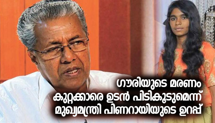 ഗൗരിയുടെ മരണം; കുറ്റക്കാരെ ഉടന് പിടികൂടുമെന്ന് മുഖ്യമന്ത്രി പിണറായിയുടെ ഉറപ്പ്