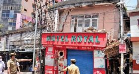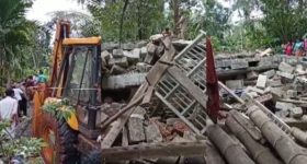 മണ്ണുകൊട്ടാരംപോലെ തകര്ന്നടിഞ്ഞ് മൂന്നു നില കെട്ടിടം