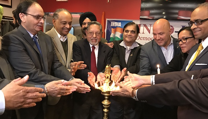 Paul Vallone, Council Member of New York City Lighting of the lamp to launch the Indo-US Democracy Foundation