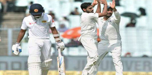 നേരത്തെ ഒന്നാം ഇന്നിംഗ്സില് 172 റണ്സ് എടുത്തപ്പോഴേക്കും ഇന്ത്യയുടെ എല്ലാവരും പുറത്തായിരുന്നു. അര്ധസെഞ്ചുറി നേടിയ ചേതേശ്വര് പൂജാര മാത്രമാണ് ഇന്ത്യന് നിരയില് പൊരുതിയത്. വിക്കറ്റ് കീപ്പര് ബാറ്റ്സ്മാന് വൃദ്ധിമാന് സാഹ 29ഉം ഓള്റൗണ്ടര് രവീന്ദ്ര ജഡേജ 22ഉം റണ്സെടുത്തു.ലങ്കയ്ക്ക് വേണ്ടി സുരംഗ ലക്മല് നാല് വിക്കറ്റെടുത്തു.