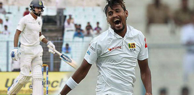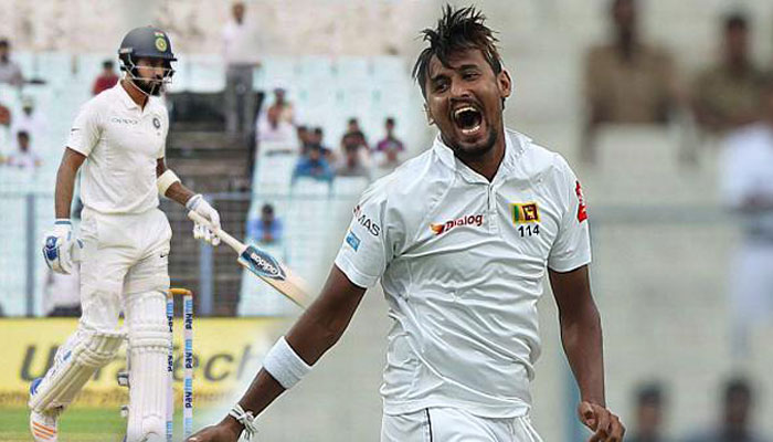 നേരത്തേ, ഏറിയ പങ്കും മഴ വില്ലനായ കൊല്ക്കത്ത ക്രിക്കറ്റ് ടെസ്റ്റിന്റെ ഒന്നാം ദിനം ഇന്ത്യ ബാറ്റിങ്ങില് തകര്ന്നിരുന്നു. മഴമൂലം വൈകി തുടങ്ങുകയും നേരത്തെ അവസാനിപ്പിക്കുകയു ചെയ്ത മല്സരത്തിന്റെ ഒന്നാം ദിനം മൂന്നു വിക്കറ്റ് നഷ്ടത്തില് 17 റണ്സ് എന്ന നിലയിലായിരുന്നു ഇന്ത്യ. 11.5 ഓവര് മാത്രമാണ് ആദ്യ ദിനത്തില് കളി നടന്നത്. ആറ് ഓവര് ബോള് ചെയ്ത് ആറും മെയ്ഡനാക്കി മൂന്നു വിക്കറ്റ് വീഴ്ത്തിയ സുരംഗ ലക്മലിന്റെ മാസ്മരിക പ്രകടനമാണ് ആദ്യ ദിനം ലങ്കയ്ക്ക് മുന്തൂക്കം സമ്മാനിച്ചത്. ഇന്ത്യന് നിരയില് കെ.എല്.രാഹുല്, ശിഖര് ധവാന്, ക്യാപ്റ്റന് വിരാട് കോഹ്ലി എന്നിവരാണ് ഒന്നാം ദിനത്തില് പുറത്തായത്.