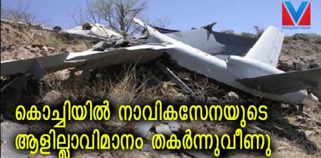 കൊച്ചിയില് നാവികസേനയുടെ ആളില്ലാവിമാനം തകര്ന്നുവീണു; ദുരന്തം ഒഴിവായത് തലനാരിഴക്ക്