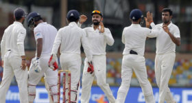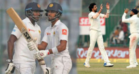 മൂന്നിന് 31 എന്ന നിലയില് അഞ്ചാം ദിനം ബാറ്റിംഗ് ആരംഭിച്ച ലങ്കയ്ക്ക് തുടക്കത്തില് തന്നെ മാത്യൂസിനെ നഷ്ടമായി. എന്നാല് അഞ്ചാം വിക്കറ്റില് ചേര്ന്ന ധനഞ്ജയ ഡിസില്വയും ചന്ഡിമാലും മത്സരത്തെ സമനിലയിലേക്ക് നീക്കുകയായിരുന്നു. ധനഞ്ജയയുടെ സെഞ്ച്വറിയാണ് ലങ്കയെ സമനിലയ്ക്ക് പ്രാപ്തമാക്കിയത്. 219 പന്തില്ഡ 15 ഫോറുകളും ഒരു സിക്സറും പറത്തിയ ധനഞ്ജയ 119 റണ്സെടുത്ത് റിട്ടയേഡ് ഹര്ട്ട് ആവുകയായിരുന്നു. ആറാം വിക്കറ്റില് ഒത്തുചേര്ന്ന റോഷന് ഡിസില്വയും (74) നിരോഷന് ഡിക്വെല്ലയും (44) ടീം തോല്ക്കില്ലെന്ന് ഉറപ്പുവരുത്തി. ഇന്ത്യയ്ക്ക് വേണ്ടി രവീന്ദ്ര ജഡേജ മൂന്ന് വിക്കറ്റുകള് വീഴ്ത്തി.