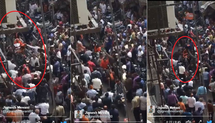 ഗുജറാത്ത് നിയമസഭാ തെരഞ്ഞെടുപ്പ് പ്രചരണം കലാശക്കൊട്ടിലേക്ക് അടുത്തുകൊണ്ടിരിക്കെ ബിജെപി പ്രവര്ത്തകരുടെ കൊടികളും തൊപ്പികളും വലിച്ചെറിഞ്ഞ് പ്രതിഷേധം. ദലിത് നേതാവ് ജിഗ്നേഷ് മേവാനി ട്വിറ്ററില് പങ്കുവെച്ച വീഡിയോയാണ് വാര്ത്തക്ക് ആധാരം. റോഡ് നിറഞ്ഞ് തടിച്ചുകൂടിയ ജനക്കൂട്ടത്തിന് ഇടയിലൂടെ ബൈക്കുകളില് കടന്നുപോകുകയായിരുന്ന ബിജെപി പ്രവര്ത്തകരെ തടഞ്ഞുനിര്ത്തി ഇവരുടെ കയ്യില് നിന്ന് കാവിക്കൊടികള് പിടിച്ചുവാങ്ങുന്നതും തലയിലെ താമര ചിഹ്നം പതിപ്പിച്ച തൊപ്പികള് വലിച്ചെറിയുന്നതുമാണ് ദൃശ്യങ്ങളിലുള്ളത്.