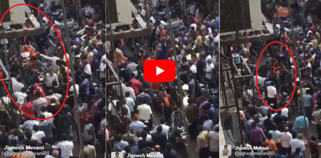 ഗുജറാത്ത് നിയമസഭാ തെരഞ്ഞെടുപ്പ് പ്രചരണം കലാശക്കൊട്ടിലേക്ക് അടുത്തുകൊണ്ടിരിക്കെ ബിജെപി പ്രവര്ത്തകരുടെ കൊടികളും തൊപ്പികളും വലിച്ചെറിഞ്ഞ് പ്രതിഷേധം. ദലിത് നേതാവ് ജിഗ്നേഷ് മേവാനി ട്വിറ്ററില് പങ്കുവെച്ച വീഡിയോയാണ് വാര്ത്തക്ക് ആധാരം. റോഡ് നിറഞ്ഞ് തടിച്ചുകൂടിയ ജനക്കൂട്ടത്തിന് ഇടയിലൂടെ ബൈക്കുകളില് കടന്നുപോകുകയായിരുന്ന ബിജെപി പ്രവര്ത്തകരെ തടഞ്ഞുനിര്ത്തി ഇവരുടെ കയ്യില് നിന്ന് കാവിക്കൊടികള് പിടിച്ചുവാങ്ങുന്നതും തലയിലെ താമര ചിഹ്നം പതിപ്പിച്ച തൊപ്പികള് വലിച്ചെറിയുന്നതുമാണ് ദൃശ്യങ്ങളിലുള്ളത്.