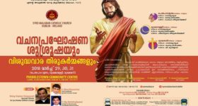 ഡബ്ലിന് – സീറോ മലബാര് ലൂക്കന് ഇടവകയുടെ നേതൃത്വത്തില് ജിംഗില് ബെല്സ് 2017 എന്ന പേരില് തിരുപ്പിറവി ആഘോഷങ്ങള് നടത്തപ്പെടുന്നു. 2017 ഡിസംബര് 16 തീയതി 2 മണി മുതല് 8.30 വരെ പമേഴ്സ്ടൗണ് സെന്റ് ലോര്ക്കന്സ് സ്കൂള് ഓഡിറ്റോറിയത്തില് വച്ചാണ് ആഘോഷപരിപാടികള് നടത്തപ്പെടുന്നത്. 2 മണിക്ക് വിശുദ്ദ കുര്ബാനയോടെ ആഘോഷങ്ങള്ക്ക് തുടക്കം കുറിക്കും.