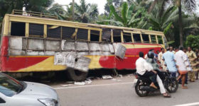 കോഴിക്കോട്:ഗുണ്ടല്പേട്ടയില് കെഎസ്ആര്ടിസി ബസ് ഡിവൈഡറിലിടിച്ച് കണ്ടക്ടര് മരിച്ചു. കോഴിക്കോട് സ്വദേശി ഷിജു ആണ് മരിച്ചത്. ബാംഗ്ലൂരില് നിന്നും കോഴിക്കോട്ടേക്ക് വരികയായിരുന്ന ബസാണ് ഡിവൈഡറിലിടിച്ച് മറിഞ്ഞത്.ഗുണ്ടല്പേട്ട കാക്കല് തൊണ്ടിക്ക് സമീപം പുലര്ച്ചെ മൂന്നു മണിക്കാണ് അപകടം ഉണ്ടായത്. അതേസമയം ബസിലുണ്ടായിരുന്ന യാത്രക്കാര്ക്ക് പരിക്ക് പറ്റിയത് സംബന്ധിച്ച് കൂടുതല് വിവരങ്ങളൊന്നും ലഭ്യമായിട്ടില്ല.