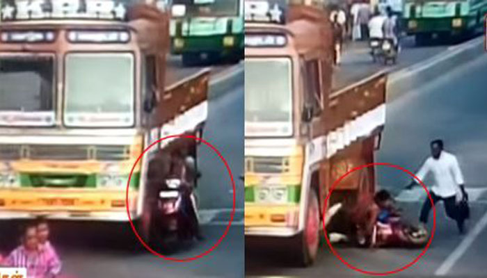 ലോറിക്കടിയില്പ്പെട്ട യുവതികള് രക്ഷപ്പെട്ടത് തലനാരിഴയ്ക്ക്; നന്ദി പറയേണ്ടത് ആ ലോറി ഡ്രൈവറോട്;ഒന്ന് പിഴച്ചിരുന്നെങ്കില്- വീഡിയോ