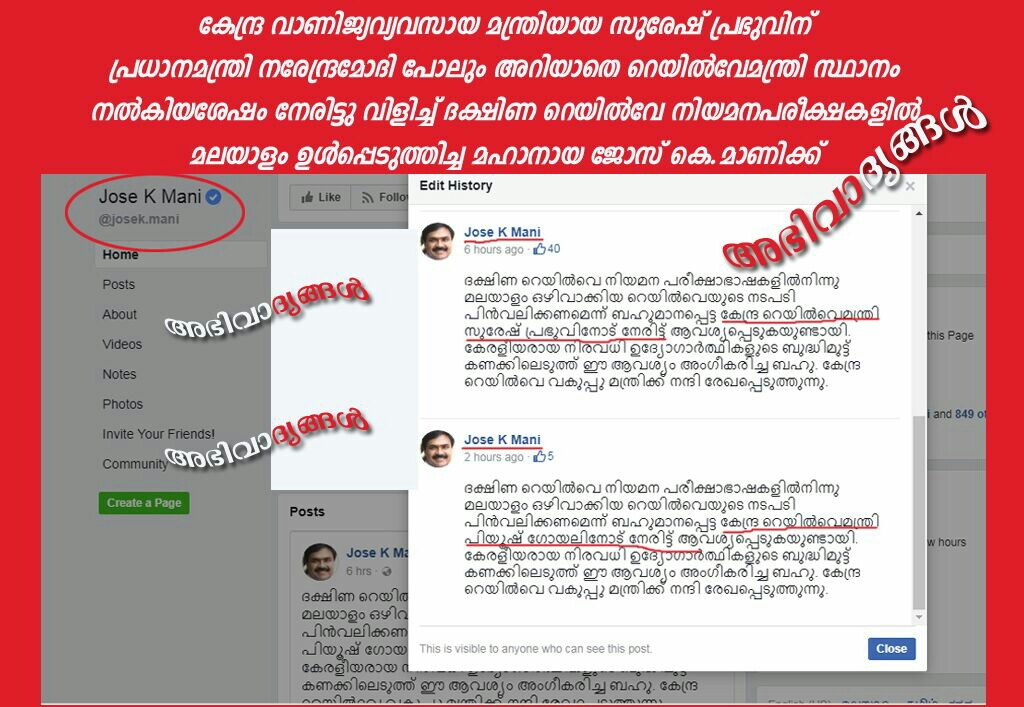 റെയില്വേ മന്ത്രി ആരെന്നറിയില്ല… പക്ഷെ ആ ഗര്ഭത്തിനു ഉത്തരവാദി നമ്മളാണ് ; ക്രെഡിറ്റ് അടിച്ചു മാറ്റാന് നോക്കി പണി കിട്ടി ജോസ് കെ മാണി