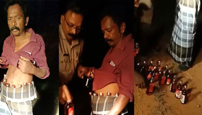 അരയില് ‘അരഞ്ഞാണം’ പോലെ 16 കുപ്പി മദ്യം കെട്ടിവച്ച് കടത്താന് ശ്രമം; വളഞ്ഞിട്ട് പിടിച്ച് എക്സൈസ്- വിഡിയോ