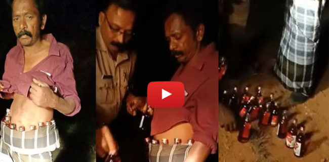 അരയില് ‘അരഞ്ഞാണം’ പോലെ 16 കുപ്പി മദ്യം കെട്ടിവച്ച് കടത്താന് ശ്രമം; വളഞ്ഞിട്ട് പിടിച്ച് എക്സൈസ്- വിഡിയോ