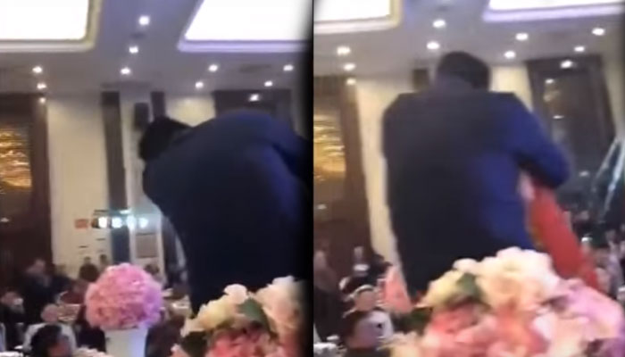 നവവധുവിനെ വിവാഹവേദിയില് ആളുകളുടെ മുന്നില് കെട്ടിപ്പിടിച്ച് ഉമ്മവെച്ച വരന്റെ പിതാവിനെ പഞ്ഞിക്കിട്ട് ബന്ധുക്കള്. ചൈനയിലെ ബെയ്ജിംഗിലാണ് സംഭവം. സ്റ്റേജിലേക്ക് നടന്നു വരികയായിരുന്ന വധുവിനൊപ്പം എത്തിയ വരന്റെ പിതാവ് പെട്ടന്ന് യുവതിയെ കടന്നു പിടിച്ച ശേഷം ചുംബിക്കുകയായിരുന്നു. അപ്രതീക്ഷിതമായിരുന്ന ചുംബനത്തില് വധുവും ബന്ധുക്കളും ഞെട്ടി.