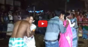 നിരവധിയാളുകള്ക്ക് മുന്പില് വെച്ചായിരുന്നു ചുംബനം. പെട്ടെന്ന് തന്നെ ആളുകളില് ചിലര് കൈയടിക്കുകയും മറ്റ് ചിലര് ബഹളം വെക്കുകയും ചെയ്തു. തുടര്ന്ന് സത്കാര വേദിയില് ഒരു കൂട്ടയടി തന്നെ നടന്നു. അലങ്കരിച്ച സ്റ്റേജ് ഇളകുന്നത് വീഡിയോയില് കാണാം.