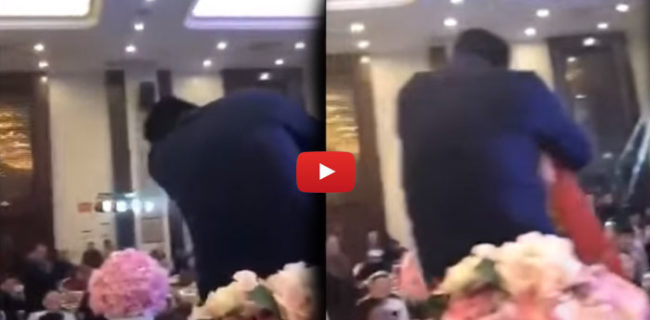 നവവധുവിനെ വിവാഹവേദിയില് ആളുകളുടെ മുന്നില് കെട്ടിപ്പിടിച്ച് ഉമ്മവെച്ച വരന്റെ പിതാവിനെ പഞ്ഞിക്കിട്ട് ബന്ധുക്കള്. ചൈനയിലെ ബെയ്ജിംഗിലാണ് സംഭവം. സ്റ്റേജിലേക്ക് നടന്നു വരികയായിരുന്ന വധുവിനൊപ്പം എത്തിയ വരന്റെ പിതാവ് പെട്ടന്ന് യുവതിയെ കടന്നു പിടിച്ച ശേഷം ചുംബിക്കുകയായിരുന്നു. അപ്രതീക്ഷിതമായിരുന്ന ചുംബനത്തില് വധുവും ബന്ധുക്കളും ഞെട്ടി.