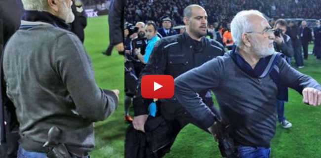 PAOK’s owner Ivan Savvidis has to be held back from attacking the ref after his team’s last minute goal was disallowedpic.twitter.com/ZZLhRFvv8L