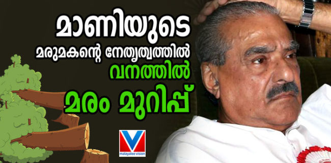 മാണിയുടെ മരുമകന്റെ നേതൃത്വത്തില് വനത്തില് മരം മുറിപ്പ്