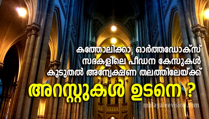 കത്തോലിക്കാ ഓര്ത്തഡോക്സ് സഭകളിലെ പീഡന കേസുകള് കൂടുതല് അന്വേക്ഷണ തലത്തിലേയ്ക്ക്: അറസ്റ്റുകള് ഉടനെ?
