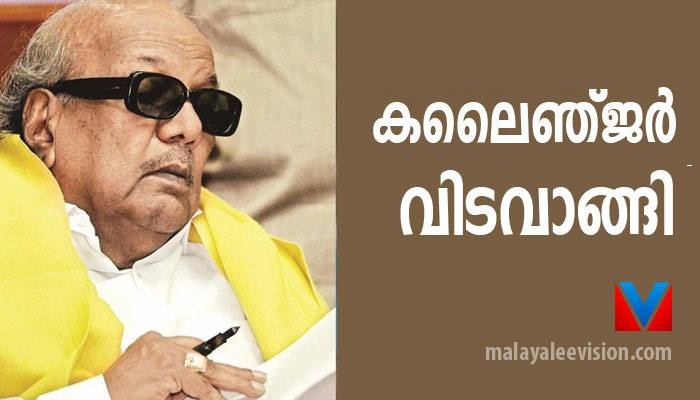 വാര്ധക്യ സഹജമായ അസുഖങ്ങളെ തുടര്ന്ന് കഴിഞ്ഞ 10 ദിവസങ്ങളായി കരുണാനിധി ചികിത്സയിലായിരുന്നു. കരുണാനിധി ഏറെനാളായി സജീവ രാഷ്ട്രീയത്തില് നിന്നു വിട്ടുനില്ക്കുകയാണ്. കഴിഞ്ഞയാഴ്ച ട്രക്കിയോസ്റ്റോമി ട്യൂബ് മാറ്റുന്നതിനായിട്ടാണ് കരുണാനിധിയെ ആശുപത്രിയില് പ്രവേശിപ്പിച്ചത്. അതിന് ശേഷമായിരുന്നു ഗോപാലപുരത്തെ വീട്ടിലേക്ക് മാറ്റിയത്.