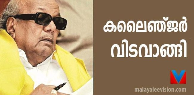 തമിഴ്നാട് മുന് മുഖ്യമന്ത്രിയും ഡി.എം.കെ അദ്ധ്യക്ഷനുമായ എം. കരുണാനിധി വിടവാങ്ങി. പനിയും അണുബാധയുമാണ് മരണകാരണം. 94 വയസായിരുന്നു. ചെന്നൈ കാവേരി ആശുപത്രിയിലായിരുന്നു അന്ത്യം. തീവ്രപരിചരണ വിഭാഗത്തില് ഡോക്ടര്മാരുടെ നിരീക്ഷണത്തിലായിരുന്നു കരുണാനിധി. മഞ്ഞപ്പിത്തം ബാധിച്ച കരളിന്റെ പ്രവര്ത്തനം തകരാറിലായിരുന്നു.