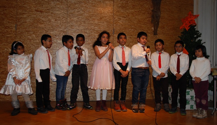 വിശിഷ്ട അതിഥിയായെത്തിയ ഐറിസ് ഫ്രാങ്ക് (ആര്ഗെ ആഗ്), കത്തോലിക്ക യുണിവേഴ്സിറ്റി നിന്നുള്ള ഫാ. സൈമണ് ഡി കൊയിക്ലാരെ എന്നിവര് ക്രിസ്മസ് സന്ദേശം നല്കി. സ്കൂള് അദ്ധ്യാപിക കുമുദിനി കൈന്തല് പഠിപ്പിച്ച ക്ലാസിക്കല് നൃത്തത്തോടുകൂടി കലാപരിപാടികള് ആരംഭിച്ചു. തുടര്ന്ന് കുട്ടികളുടെ കരോള് ഗാനവും നൃത്തനൃത്യങ്ങളും വേദിയെ ആവേശമുഖരിതമാക്കി. സോഫിയ & സാന്ദ്ര കുന്നേക്കാടന് കുട്ടികള് അവതരിപ്പിച്ച പുല്ലാങ്കുഴല് വാദ്യം ഏറെ ഹൃദ്യമായി. ക്രിസ്മസ് പാപ്പയായി എത്തിയ സെബാസ്റ്റ്യന് കിണറ്റുകര കുട്ടികള്ക്ക് മധുരം വിതരണം ചെയ്തു.