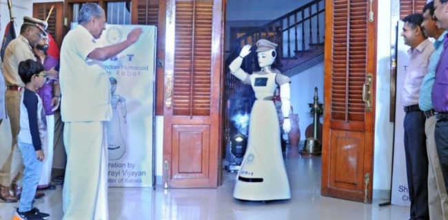 ഇന്ത്യന് അല്ല ലോകത്തില് ആദ്യമായി ഒരു റോബോട്ട് പോലീസ് ചാര്ജ്ജ് എടുത്തിരിക്കുകയാണ് നമ്മുടെ കേരളാ പോലീസില്. തിരുവനന്തപുരം വഴുതക്കാട്ടെ പോലീസ് ആസ്ഥാനത്തെത്തുന്ന സന്ദര്ശകരെ വരവേല്ക്കാനാണ് റോബോട്ടിനെ ഒരുക്കിയിരിക്കുന്നത്. കെ പി ബോട്ട് എന്ന് പേരിട്ടിരിക്കുന്ന റോബോട്ടിന്റെ ഉദ്ഘാടനം മുഖ്യമന്ത്രി പിണറായി വിജയന് നിര്വഹിച്ചു. വനിതാ പോലീസിന്റെ രൂപത്തിലുള്ള റോബോട്ടിന് എസ്.ഐ. റാങ്കാണ് നല്കിയിരിക്കുന്നത്.