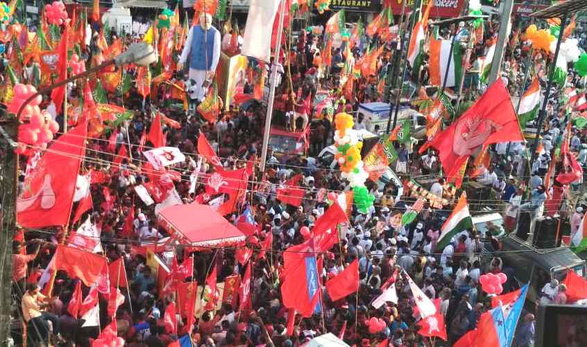 പ്രചാരണ രംഗത്തെ ആവേശച്ചൂട് വാനോളം കുതിച്ചുയരുന്ന കാഴ്ചയാണ് കലാശ കൊട്ടിലും പ്രകടമായത്. സ്ഥാനാര്ഥികളുടെ മുഖം മൂടികളും കൊടിതോരണങ്ങളും ഫ്ളക്സ് ബോര്ഡുകളുമായി പ്രവര്ത്തകര് തെരുവ് കീഴടക്കി. മുതിര്ന്ന നേതാക്കളുടെയും ചലച്ചിത്ര താരങ്ങളുടെയും അകമ്പടിയോടെ സ്ഥാനാര്ത്ഥികള് കൂടി എത്തിയതോടെ ആവേശം അണപൊട്ടി.
