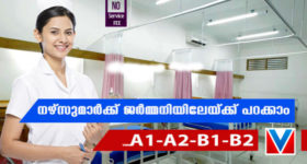 പന്ത്രണ്ടാം ക്ലാസ്സില് (+2) സയന്സ് വിഷയങ്ങളില് ഉയര്ന്ന മാര്ക്ക് ലഭിച്ച കുട്ടികള്ക്ക് ജര്മ്മനിയില് നഴ്സിംഗ് പഠിക്കാന് അവസരമുണ്ട്. താല്പര്യമുള്ള കുട്ടികള്ക്ക് ജര്മ്മന് ഭാഷ പഠനം ജൂലൈ മാസത്തില് ആരംഭിക്കും.