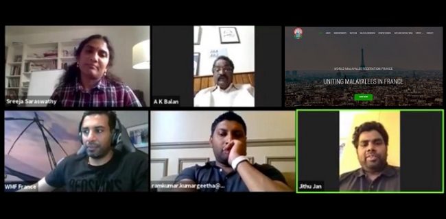 പാരീസ്: ആഗോള മലയാളികളുടെ കൂട്ടായ്മയായ വേള്ഡ് മലയാളി ഫെഡറേഷന് ഫ്രാന്സ് ഘടകത്തിന്റെ വെബ്സൈറ്റ് മന്ത്രി എ.കെ.ബാലന് ഉദ്ഘാടനം ചെയ്തു. തുടര്ന്ന് ഫ്രാന്സിലെ മലയാളികളുമായി ഫേസ്ബുക്ക് ലൈവിലൂടെ മന്ത്രി കോവിഡ് പ്രതിസന്ധി ഘട്ടത്തില് കേരള സര്ക്കാര് കൈകൊണ്ടിരിക്കുന്ന നടപടികളെയും, പകര്ച്ചവ്യാധി നിയന്ത്രണത്തിലാക്കാന് ആരോഗ്യരംഗത്ത് ഏര്പ്പെടുത്തിയിരിക്കുന്ന പ്രോട്ടോകോളുകളും വിവരിച്ചു.