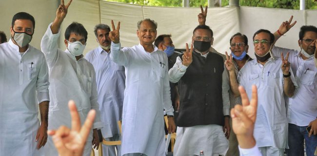 200 അംഗങ്ങളുള്ള രാജസ്ഥാന് നിയമസഭയില് 101 പേരാണ് മന്ത്രിസഭ നിലനിര്ത്താന് ആവശ്യമുള്ളത്. സച്ചിന് പൈലറ്റുമായി ചര്ച്ച നടത്താനും പ്രശ്നങ്ങള് പരിഹരിച്ച് തിരിച്ചുവരവിന് വഴിയൊരുക്കാനും തയ്യാറാണെന്ന് കോണ്ഗ്രസ് വ്യക്തമാക്കി. 30 എം.എല്.എമാര് തനിക്കൊപ്പമുണ്ടെന്നാണ് സച്ചിന് പൈലറ്റ് അവകാശപ്പെട്ടിരുന്നതെങ്കിലും പത്തില് താഴെ പേര് മാത്രമാണ് അദ്ദേഹത്തെ പിന്തുണയ്ക്കുന്നതെന്നാണ് പുതിയ റിപ്പോര്ട്ടുകള്.