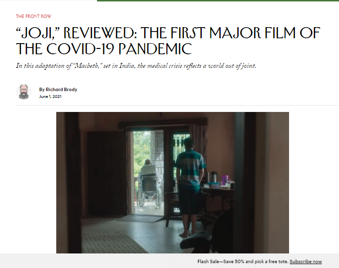 ഹോളിവുഡ് സിനിമകളേക്കാളും മികച്ചത് ; ജോജിയെ പുകഴ്ത്തി ദ ന്യൂയോര്ക്കറില് ലേഖനം