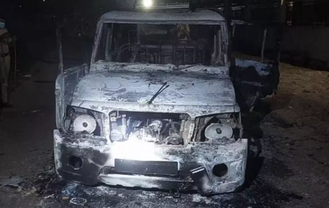 കിഴക്കമ്പലത്ത് അന്യസംസ്ഥാന തൊഴിലാളികള് പൊലീസിനെ ആക്രമിച്ചു ; പൊലീസ് ജീപ്പിന് തീവെച്ചു
