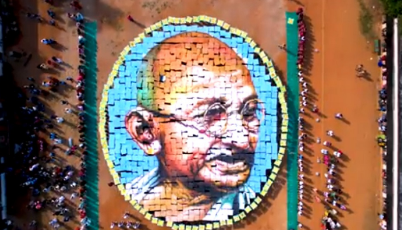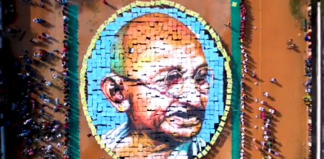 മഹാത്മാഗാന്ധിയുടെ മുഖചിത്രം ഒരുക്കി 1200 വിദ്യാര്ഥികള്
