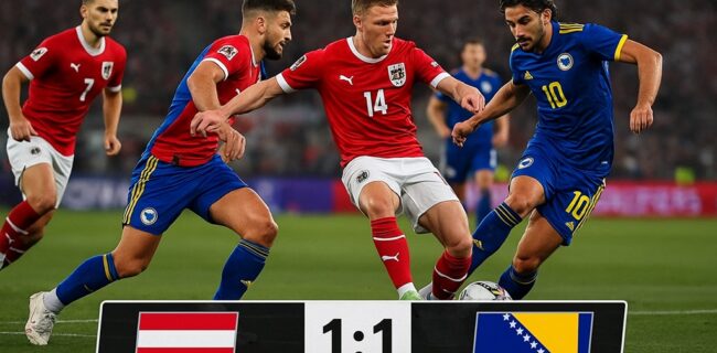 വിയന്ന: മിഖായേല് ഗ്രിഗോറിഷിന്റെ മനോഹര ഗോളിലൂടെ ബോസ്നിയക്കെതിരെ സമനില പിടിച്ചു ഓസ്ട്രിയ ലോകകപ്പില് യോഗ്യത നേടി. 28 വര്ഷങ്ങളുടെ കാത്തിരിപ്പിന് ശേഷമാണ് ഓസ്ട്രിയ ഈ സുവര്ണ്ണ നേട്ടം കരസ്ഥമാക്കിയത്. 77-ാം മിനിറ്റിലെ 1-1 സമനില ഗോളിലൂടെ ഓസ്ട്രിയ ഗ്രൂപ്പ് എച്ചില് ഒന്നാം സ്ഥാനം നേടി. 1998ന് ശേഷം ഓസ്ട്രിയയുടെ ആദ്യ ലോകകപ്പ് യോഗ്യതാമത്സരമായി ഇത്.